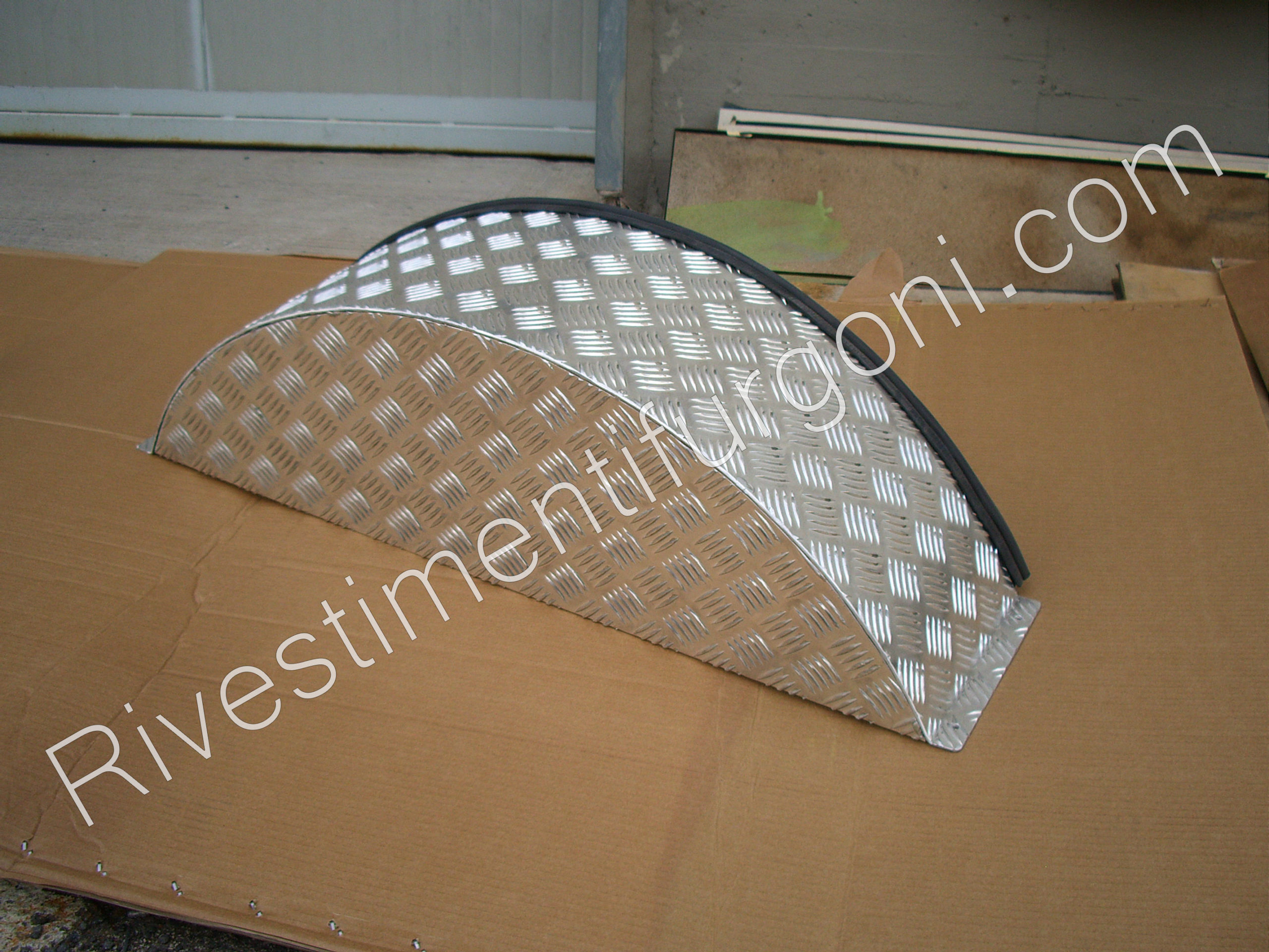 Considerando la sua funzionalità e la sua efficacia, il copripassaruota in alluminio mandorlato per Ford Transit è altamente consigliato per chi utilizza il veicolo in attività che richiedono la trasportazione di materiali pesanti. Inoltre, come i rivestimenti interni e il pianale, il copripassaruota deve essere fissato ai rivetti del veicolo.