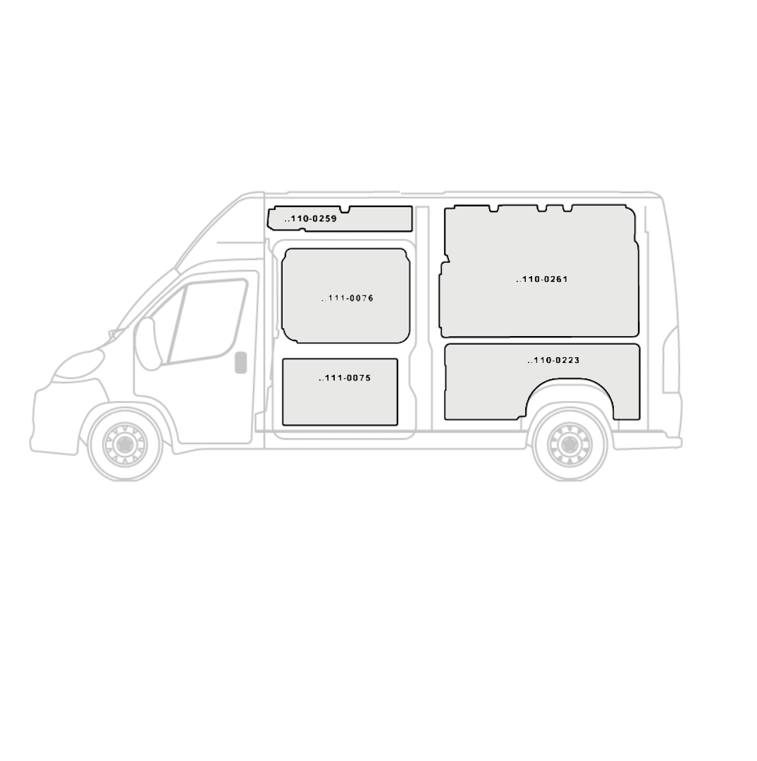 Kit Rivestimenti laterali(fiancata destra, fiancata sinistra, porte laterali e porte posteriori) per il tuo Citroen Jumper, Ducato, Boxer passo 3450 H1 dal 2006 al 2022 in pannelli di vetroresina spessi 3mm antisfondamento(rowing) con certificazione H.A.C.C.P., idonei per coinbentazione parziale come ad esempio per il trasporto di pane, trasporti farmaceutici, trasporti ortofrutticoli, trasporti alimentari. Il kit di rivestimenti laterali interni in vetroresina per Citroen Jumper è la soluzione migliore per coloro che operano nel settore alimentare o farmaceutico ( con obbligo di certificazione haccp ) ma non necessitano una coibentazione totale ( ‘‘GUSCIO’’ ) che risulterebbe più cara. Grazie alla loro leggerezza influiranno minimamente sul peso del veicolo. Il colore base è il bianco e i pannelli aderiscono perfettamente alle pareti del veicolo.