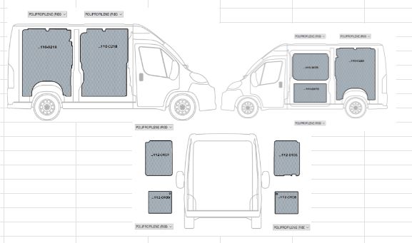 - Set di pannellature realizzate su misura per le Pareti laterali del Veicolo